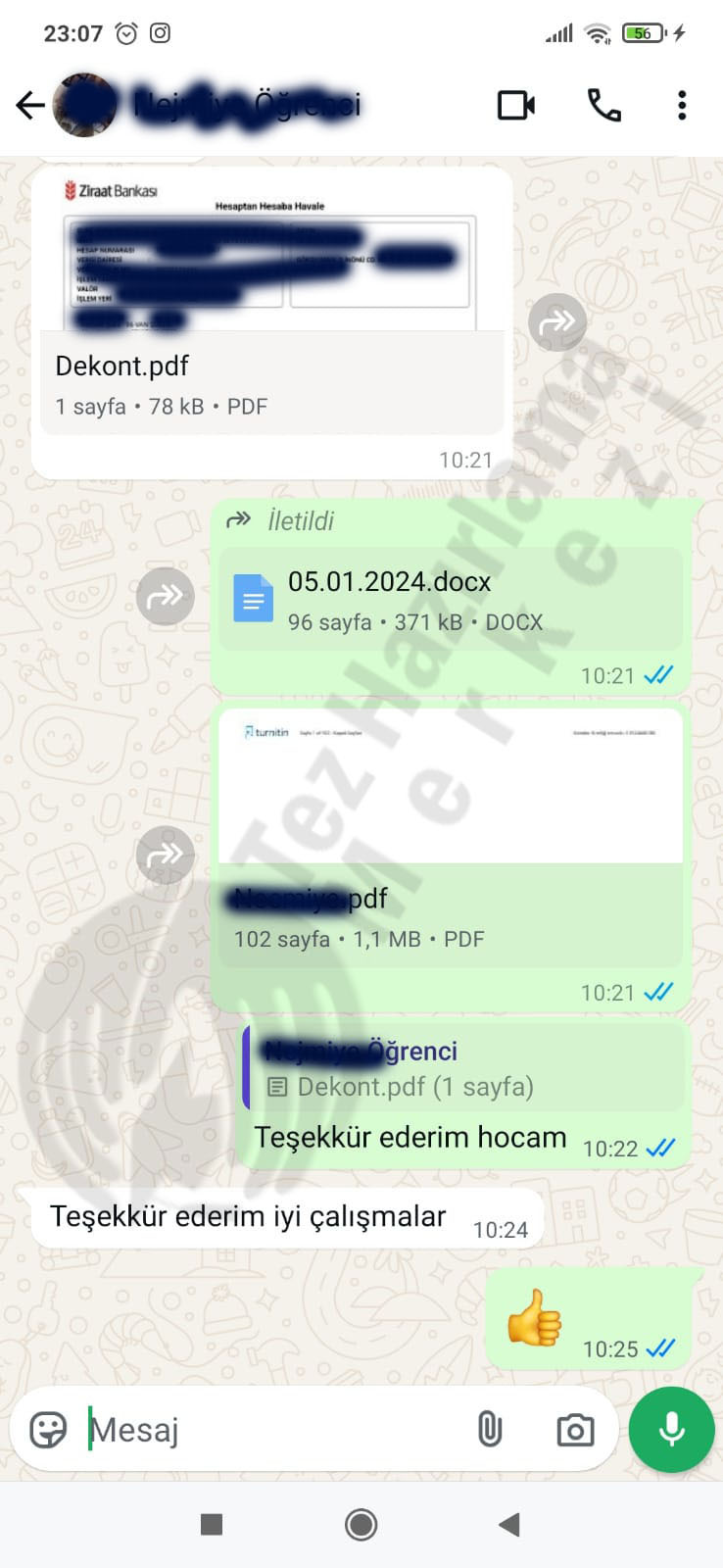 - Tez Yazdırma Hizmeti Alan Öğrencilerin WhatsApp Yorumları